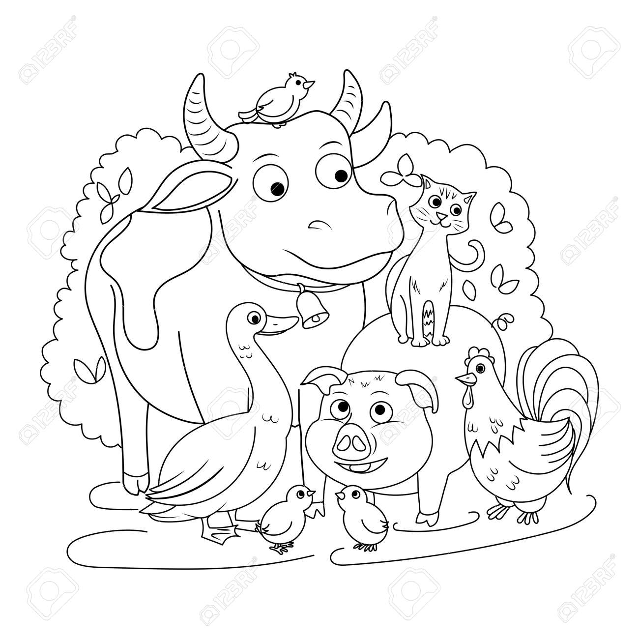 Coloring Page Outline Of Cartoon Cow With Bell Farm Animals Coloring Book For Kids Stock Vector C Oleon17 332782750